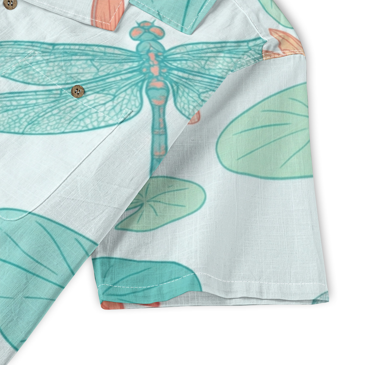 Step into a serene garden atmosphere with this beautifully designed shirt featuring graceful dragonflies and floating lotus flowers.