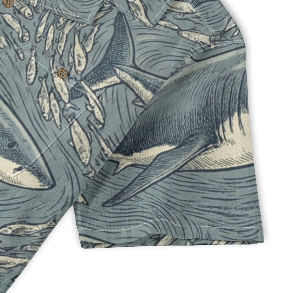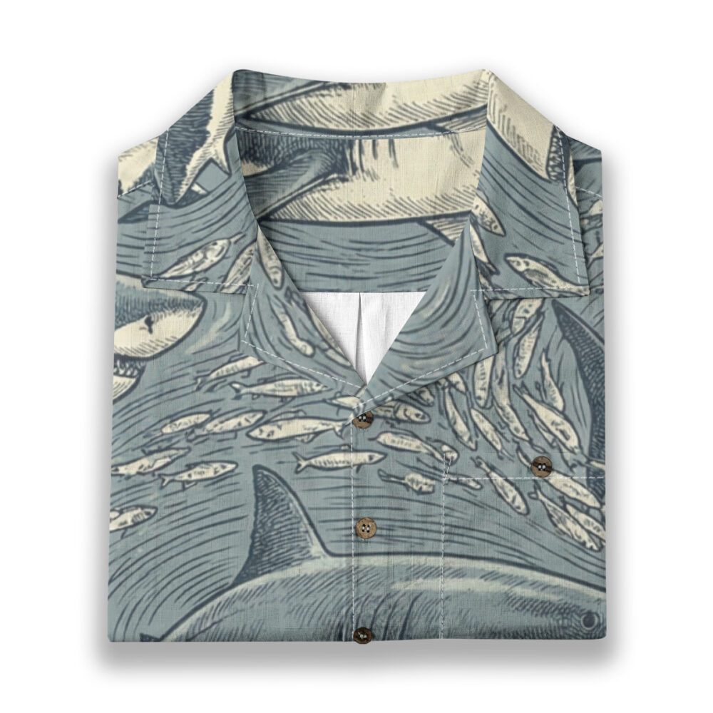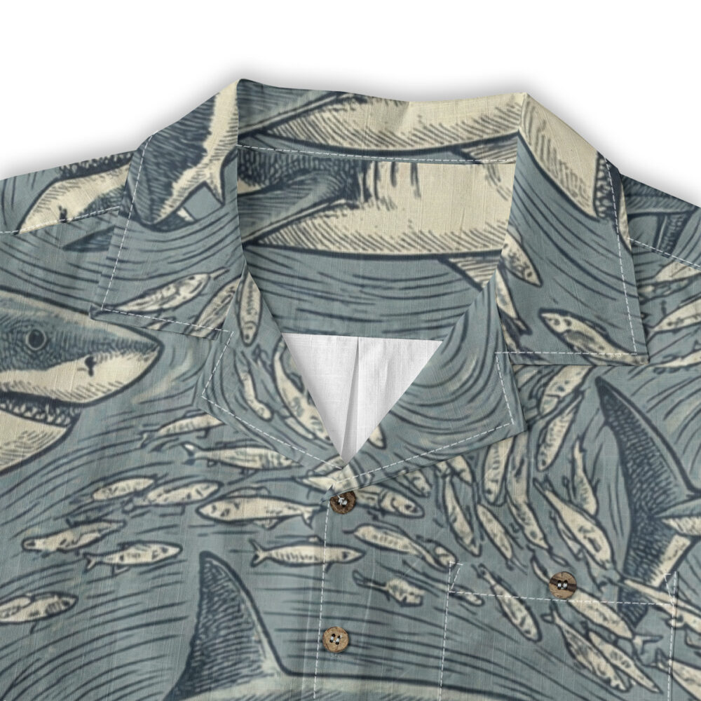 Capture the power of the open sea with this Vintage Shark School Ocean Illustration shirt, featuring sharks cruising through swirling waters.